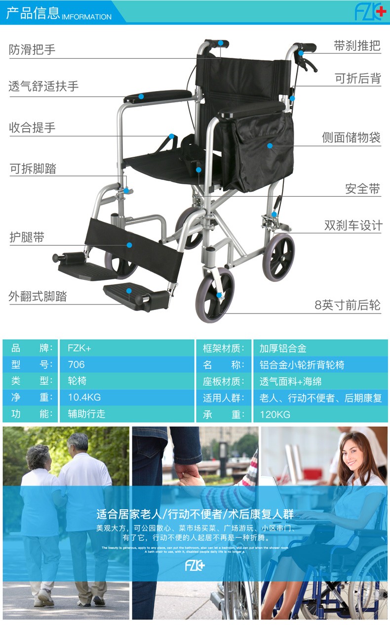 FZK-706 ALUMINUM FOLDING BACK WHEELCHAIR