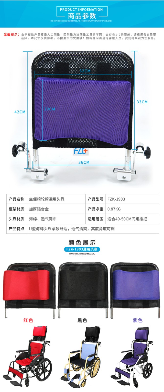 FZK-1903 COMMODE CHAIR HEADREST FOR ALL WHEELCHAIRS